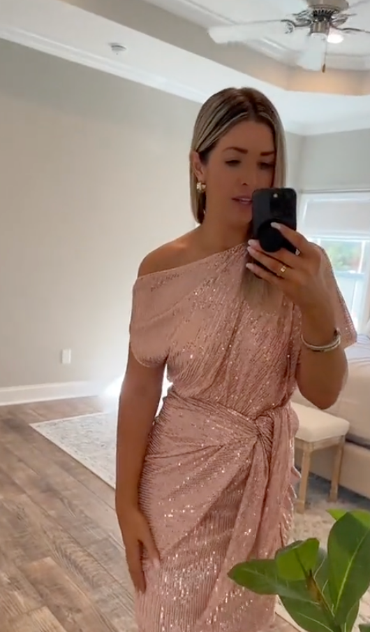 I’m usually super picky with dresses, but this one genuinely surprised me. The drape hides everything I’m insecure about while still giving that snatched look. The sequins are high quality and don’t fall off, and the dress feels way more expensive than it is. Wore it to a work event and felt confident the entire night — got so many compliments without even trying.